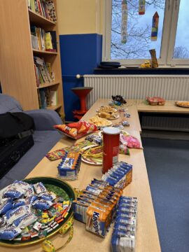 Hier ein paar Bilder aus den Klassenräumen und der gesunden und süßen Leckereien.