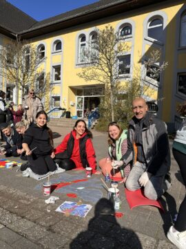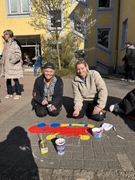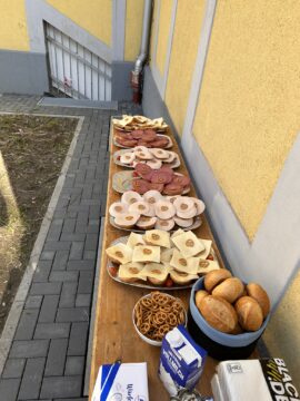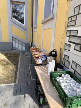 Zwischendurch gab es natürlich eine kleine Stärkung bei Kaffee, Tee, Mineralwasser und belegten Brötchen. Frau Heimann-Hindrichs war zwar nicht bei den Malereien aktiv, kümmerte sich dafür um das leibliche Wohl der Helfer*innen. (Go/Py)