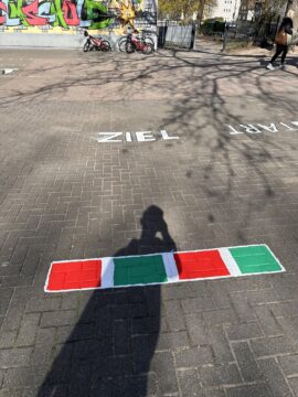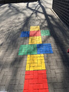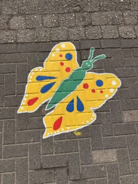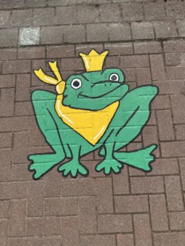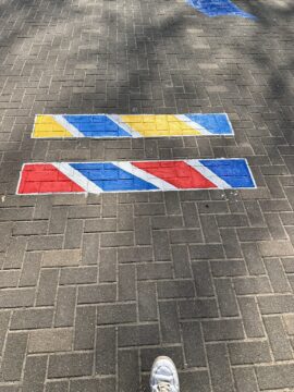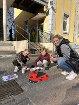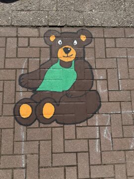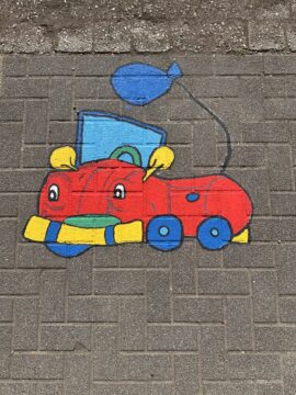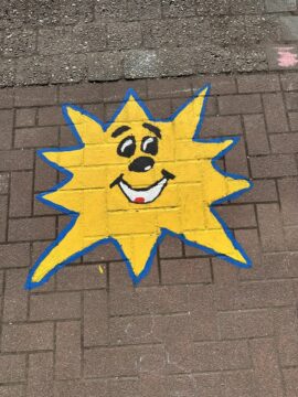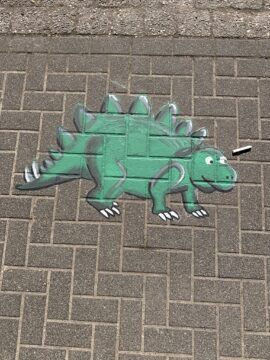 Für die Umsetzung benötigen wir immer Sonnenschein, dafür ist jemand anderes verantwortlich – grins, und die tatkräftige Hilfe vieler Eltern oder auch Großeltern, Tanten usw. In diesem Jahr meldeten sich 18 Familien als Helfer*innen an, teilweise auch mit zwei Personen. Dazu kamen noch einige Lehrkräfte, die vor Ort unterstützten. Um 9.00 Uhr starteten wir unsere Malaktion mit viel Elan. Im Vorfeld hatte Herr Pyka, Schulleiter, neue Markierungsfarben bestellt, die unser Förderverein gesponsert hat. Mit guter Laune und viel Eifer waren bei strahlendem Sonnenschein alle dabei, auch wenn es morgens noch recht frisch war. Auf den Knien liegend wurden Sonne, Dino, Frosch, Schmetterling & Co erneuert. Und wie sagt man so schön: Viele Hände, schnelles Ende! Und so war das dann auch heute Mittag mit allen geplanten Malereien fertig. Herzlichen Dank an die vielen Helfer*innen und natürlich auch an unseren Förderverein.