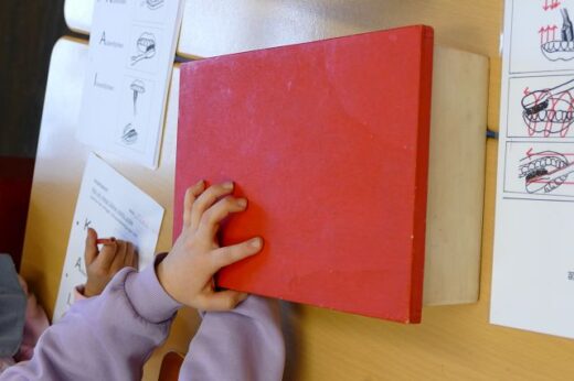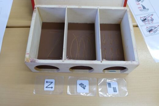 Die Kids mussten hier zuerst im Kasten fühlen, welche Bewegung wo ist und kleine Kärtchen entsprechend zuordnen. Danach durfte man den Deckel herunterheben und schauen, ob man alle drei Kärtchen richtig zugeordnet hatte.