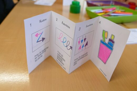 Hier durfte man ein Leporello anmalen und anschließend falten. Das fanden die Kinder auch ganz toll.