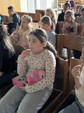Interessiert hörten die Kids aus dem 2. – 4. Jahrgang zu. Zwischen den Reden gab es immer einen kräftigen Applaus und am Ende einen dicken Schlussapplaus.