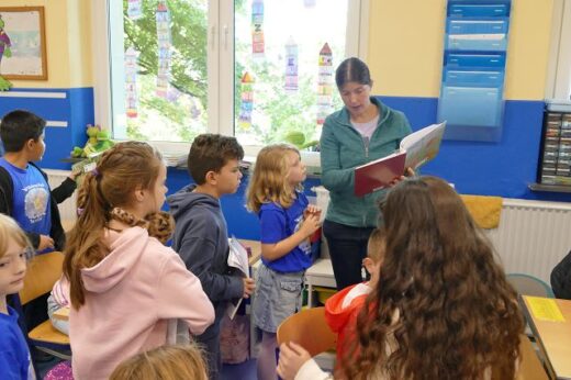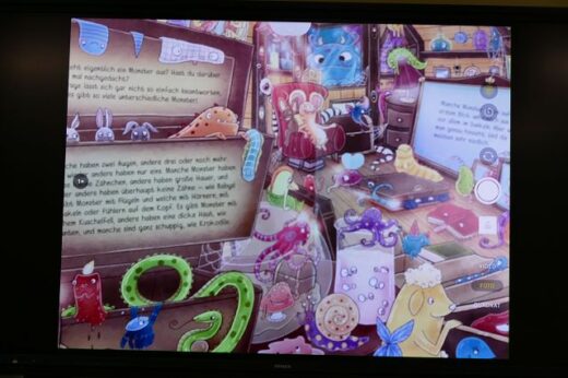 Frau Yigit, Klassenlehrerin der Klasse 3c, hatte für ihre Kids das Bilderbuch 101 Monster ausgesucht. Mit viel Spaß waren alle dabei. In der nächsten Woche sollen die Kinder dann Texte über Monster verfassen und in ihr Text-Schatz-Buch schreiben.