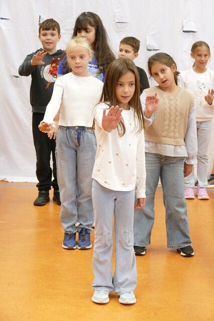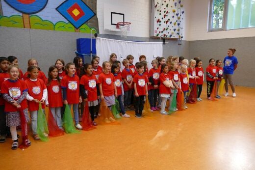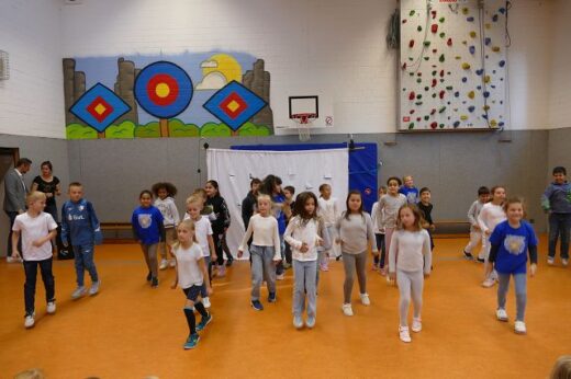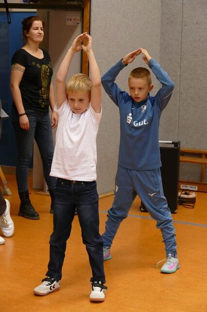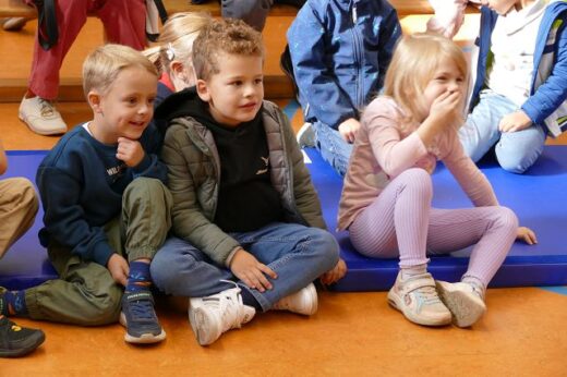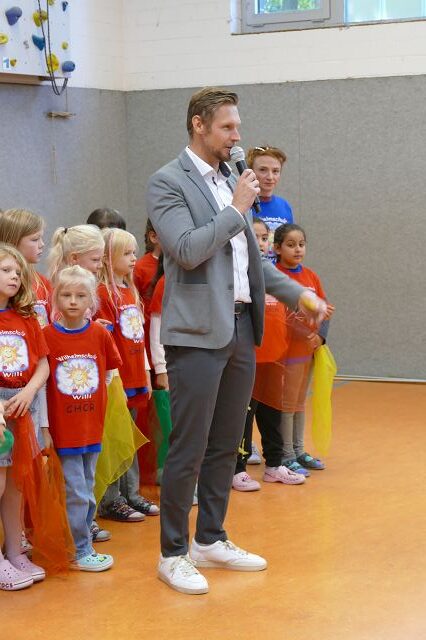 Um 10.45 Uhr hatten unsere Gäste die Möglichkeit, an einer Vorführung in der Turnhalle teilzunehmen. Zuerst begrüßte Herr Pyka unsere Besucher*innen ganz herzlich.