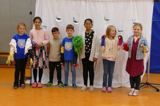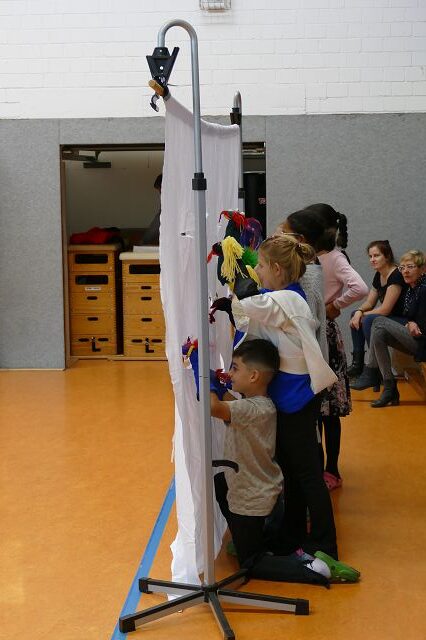 Mit der Klasse 3b zogen die Handpuppen in die Turnhalle ein und zeigten uns Mahna Mahna. Da gab es viele Lacher im Publikum zu hören. Am Schluss rief ein Kind laut: „Das war ja total witzig!“