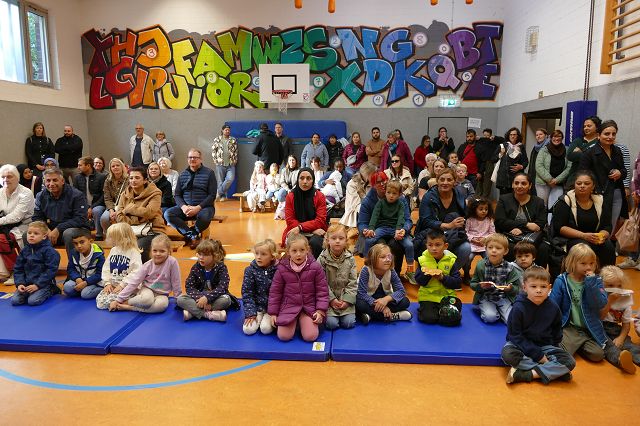 Um 10.45 Uhr hatten unsere Gäste die Möglichkeit, an einer Vorführung in der Turnhalle teilzunehmen. Zuerst begrüßte Herr Pyka unsere Besucher*innen ganz herzlich.